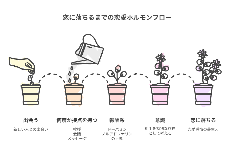 ここでは、恋に落ちるまでに脳の中で何が起きているのかを整理します。