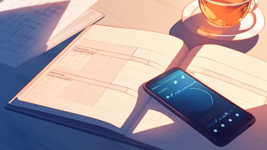 - 体の感覚を一言:胸が重い、肩が固い、呼吸が浅い